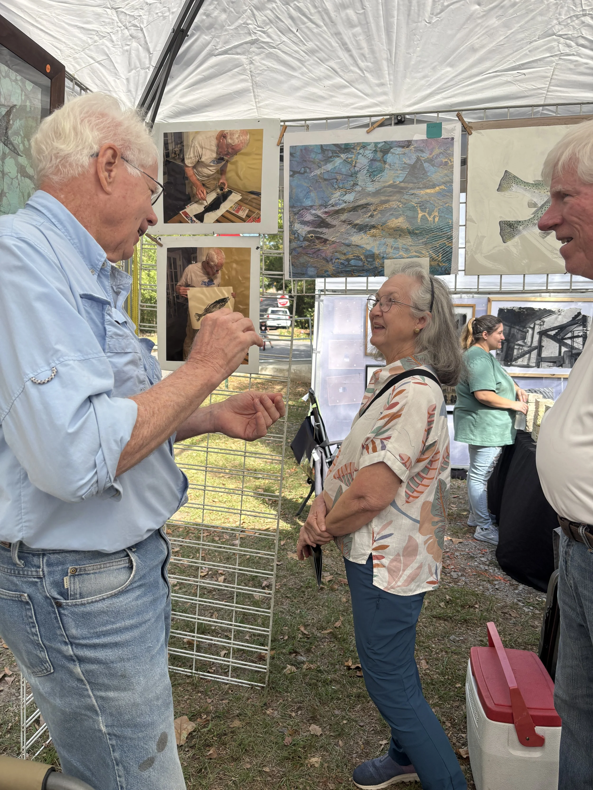 Jim Brown of Birmingham, Alabama chatting with visitors in his booth at the 2025 Art Show.